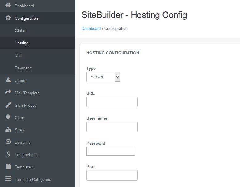 - Under the Type dropdown, select type of your web hosting. Under the URL amd Port textbox, enter URL and Port of your hosting control panel. Under the Username and Password textbox, enter Login Details of the Control Panel.